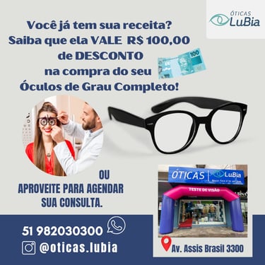 Consultoras com 24 anos de experiência em ótica, atendimento a domicílio disponível.