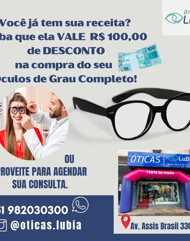 Ótica com 24 anos de experiência, oferecendo lentes de contato e atendimento a domicílio.